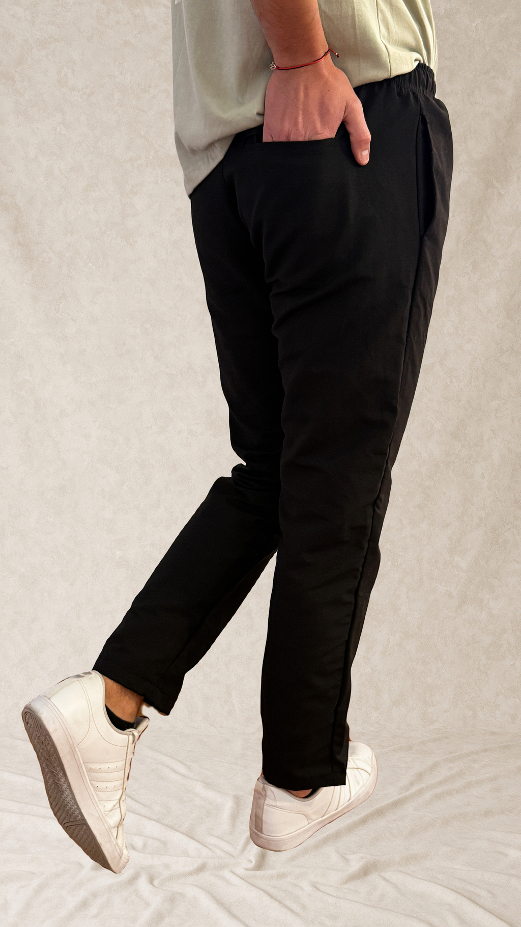 pantalon sastrero con cintura elastica y bolsillos chinos
